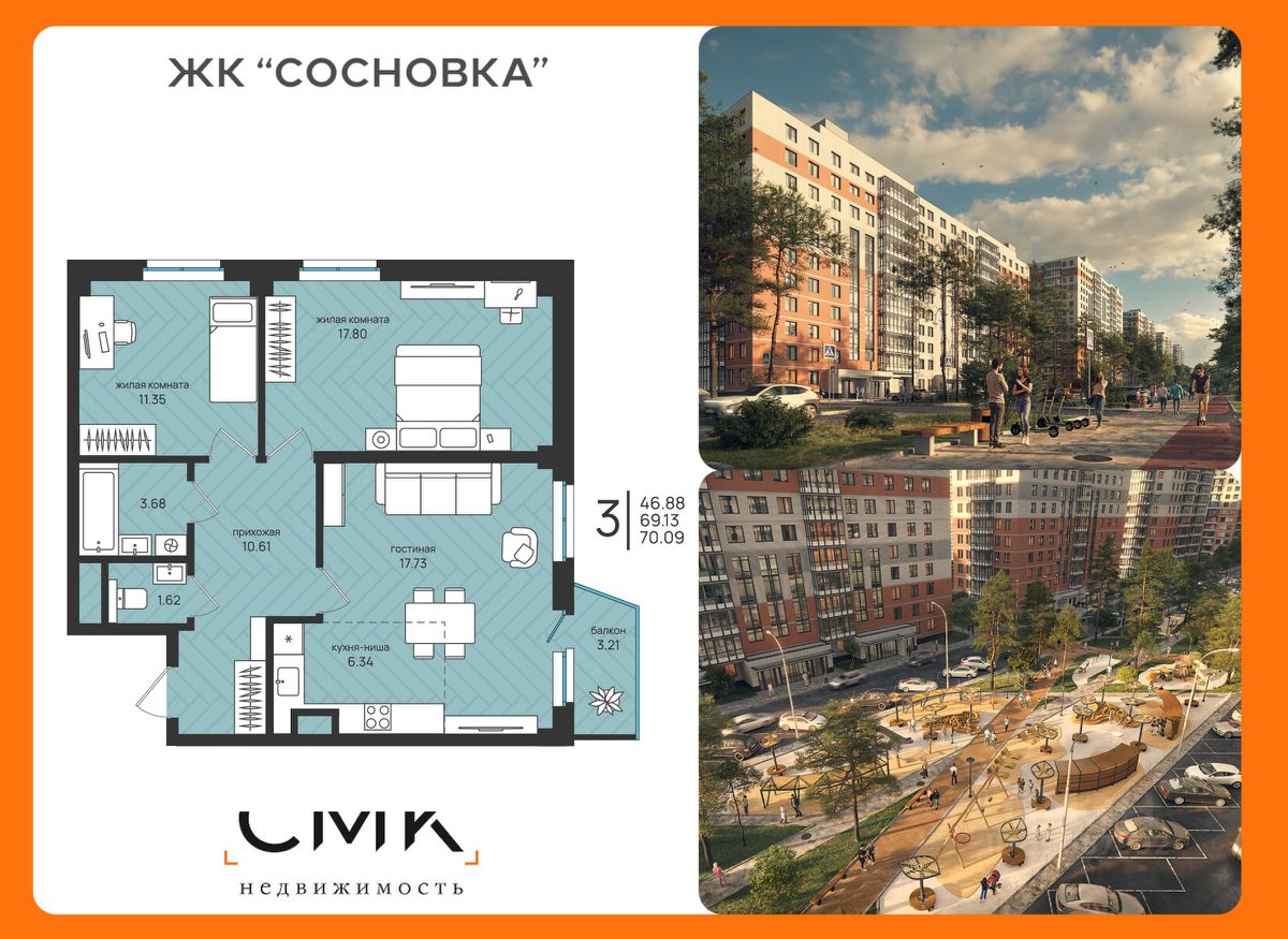 70 м² · Этаж 9 из 16