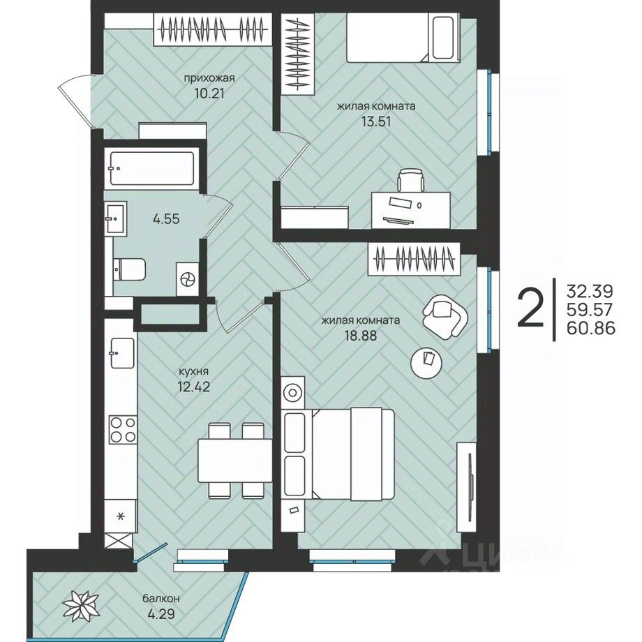 60 м² · Этаж 6 из 16