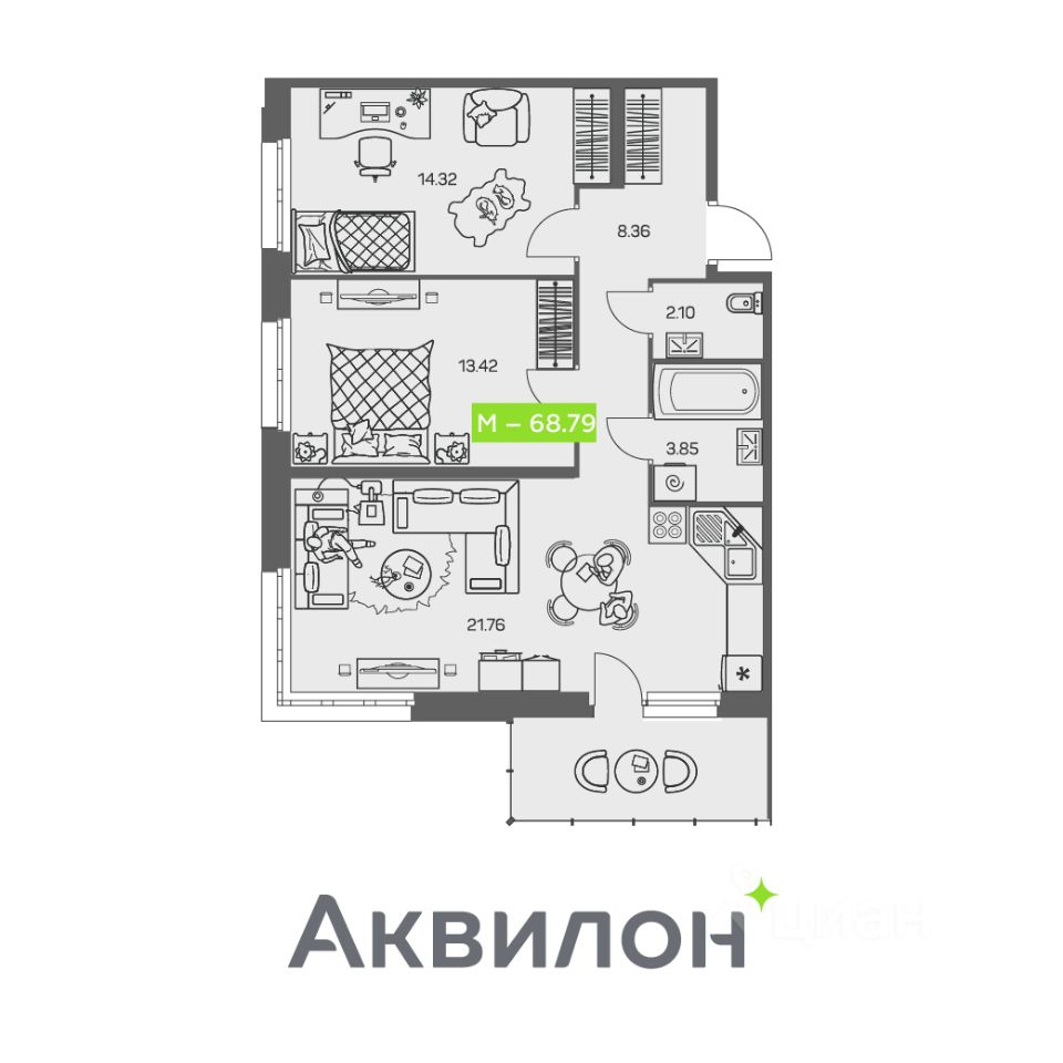 68 м² · Этаж 6 из 8