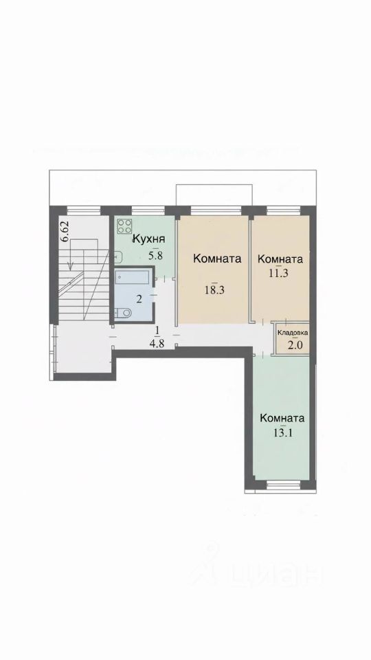 62 м² · Этаж 1 из 9