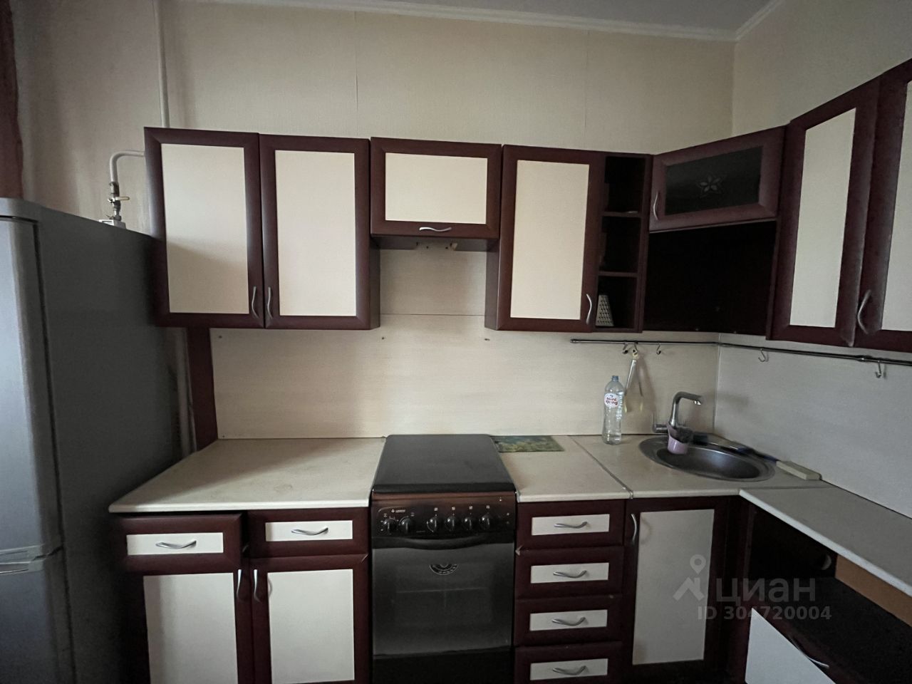На кухне холодильник, плита, кухонный гарнитур (за исключением стола и стульев).
