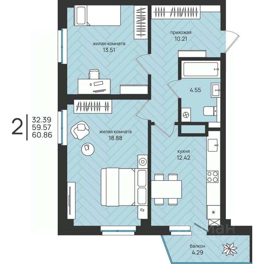 продам 2-к, Ленина, 21 корп. 107 801 157 ₽
