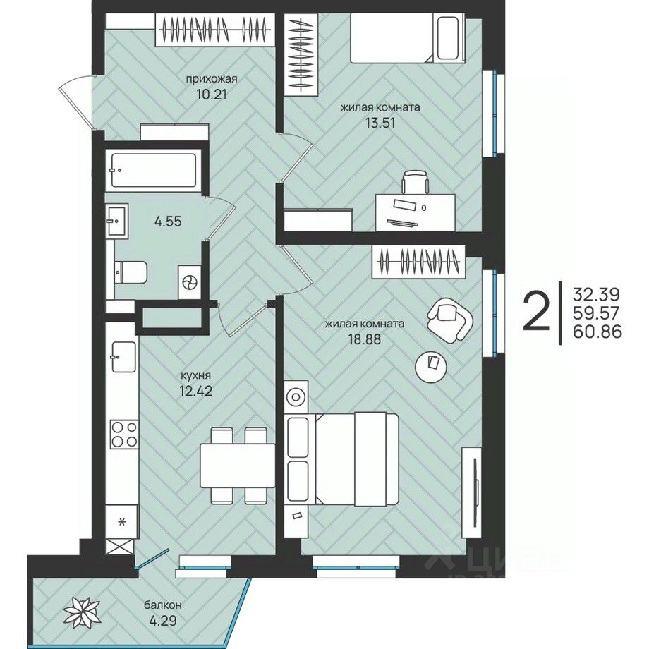 продам 2-к, Ленина, 21 корп. 107 801 157 ₽