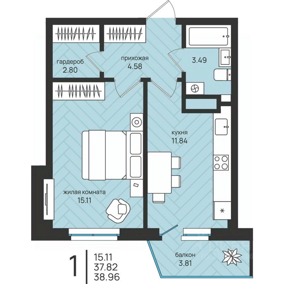 продам 1-к, Ленина, 21 корп. 104 974 447 ₽