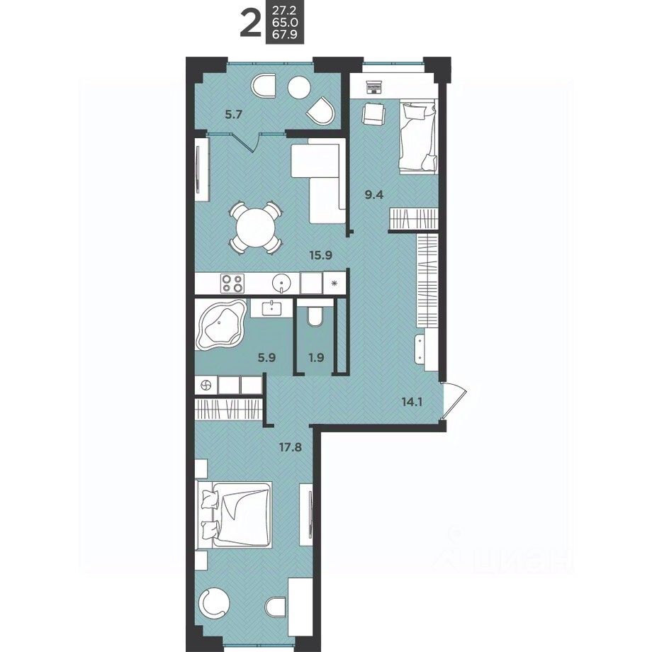 продам 2-к, Крымская, 5 стр.8 430 218 ₽
