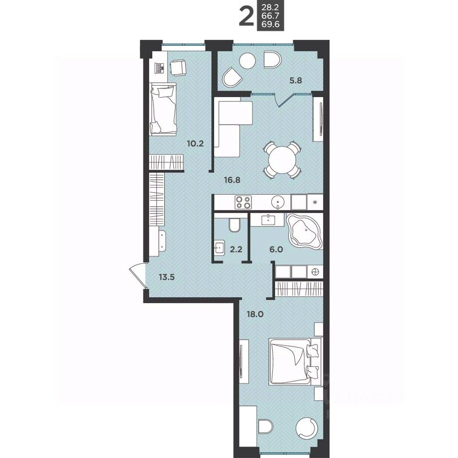 продам 2-к, Крымская, 5 стр.8 208 030 ₽