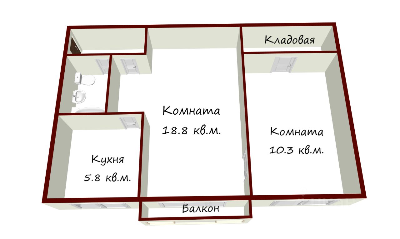 Описание квартиры: Комнаты смежные, но есть возможность перепланировки для создания более комфортного пространства. Кладовая для удобного хранения вещей. Санузел совмещенный, стояки заменены. Квартира освобождена и готова к ремонту под ваш вкус.