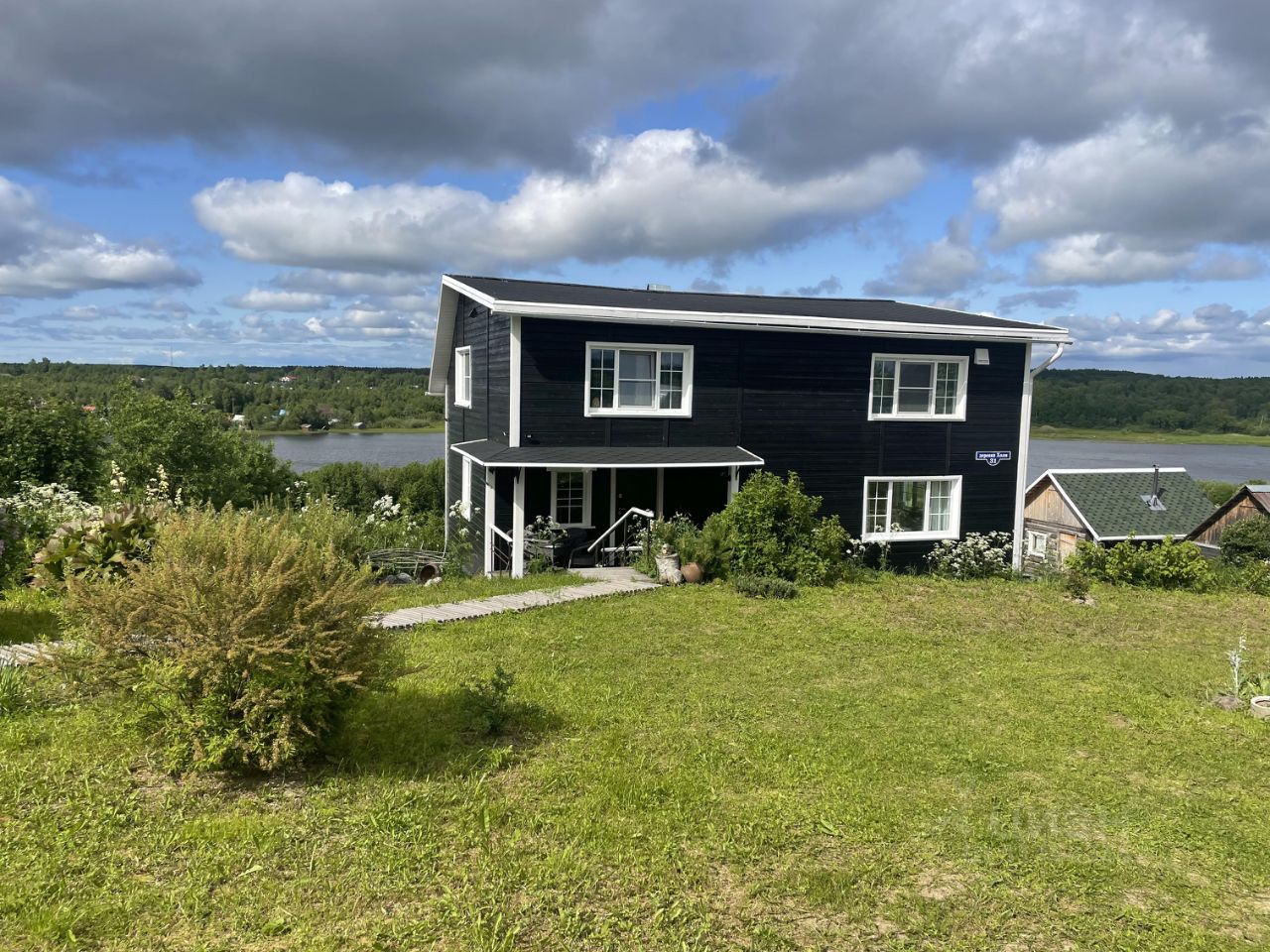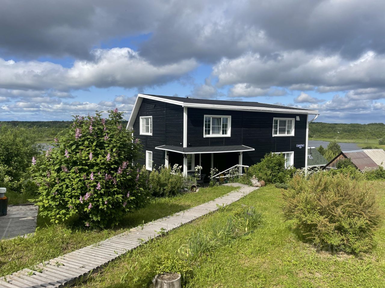 Продается дом круглогодичного проживания, в замечательном месте, д. Холм Приморского района Архангельской области. Дом расположен на возвышенном берегу между двух озер (оз..Лахта и оз. Большое Холмовское). Дом имеет размеры 10,2 на 7,2 метра, два этажа, внутренняя веранда 8 кв .м.. Жилая площадь 121,2 метра. Фундамент на винтовых сваях в количестве 34 штук, вкрученных в грунт на 3,5 метра, соединены обвязкой из уголка и 200 швеллера. Расчетная нагрузка фундамента выполнена на заводе Россваи и составляет 240 т. Стены дома выполнены из бруса. Два первых венца лиственница 200 на 200 и последующие сосна 150 на 150. Снаружи стены утеплены минеральной ватой с ветрозащитой и обшиты имитацией бруса. Покрыты септиком с колером (Тиккурилла). Полы утеплены эковатой толщиной 400 мм. Кровля имеет утепление 200 мм и снаружи закрыта финской мягкой черепицей. На первом этаже расположены: прихожая, гостиная-кухня, санузел, сауна на дровяной печи. Имеется печь (с отдельным фундаментом) в виде камина и плиты с тепловым щитком. Половое покрытие первого этажа состоит: кухня и санузел- керамогранит с электроподогревом, гостиная-паркетная доска, прихожая- влагостойкий ламинат. Второй этаж : большой холл, две спальни, гардеробная, санузел. Полы в спальных помещениях и санузле -пробка, холл и гардеробная- ламинат. Оконные проемы в доме закрыты стеклопакетами. Входная дверь- металлическая с утеплением. Имеются все необходимые коммуникации: водопровод с термоподогревом- (подача воды из озера через накопитель), канализация- (двухступенчатый септик). В доме есть система вентиляции и рекуперации. Электроснабжение 15 квт. Так же на участке имеется баня рубленая из бревна, круглогодичного использования. Гараж 36 кв.м. со смотровой ямой и погребом, теплица, парник, мангал, дровница. Посажено и плодоносят различные кусты и деревья. В шаговой доступности рыбалка и лес.