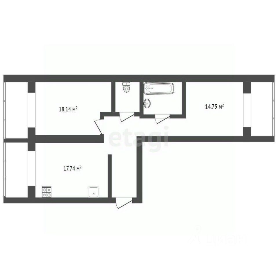 Общая площадь 65,2 кв. м