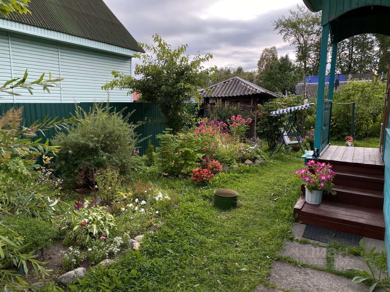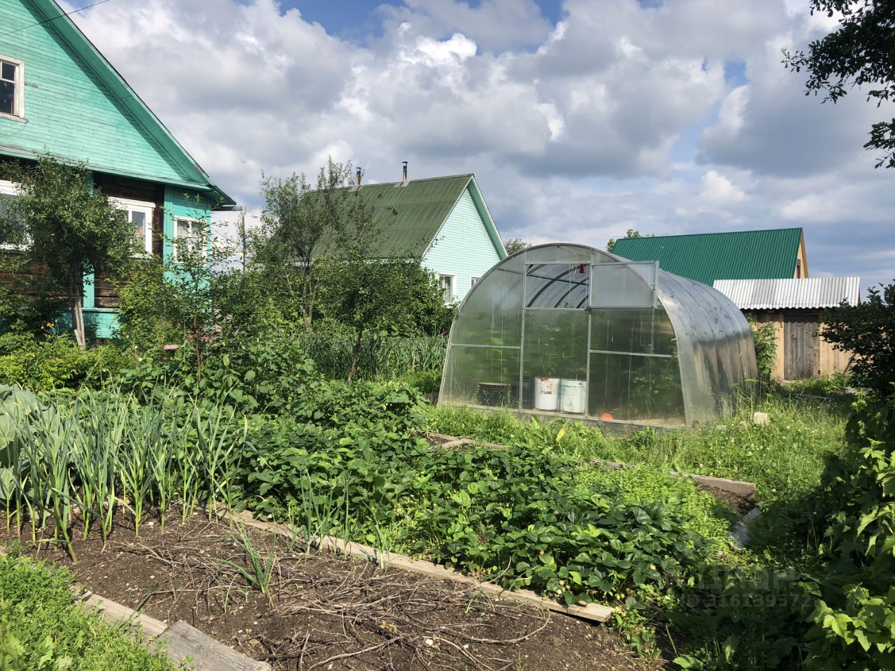 На участке баня, дощатый гараж, беседка, большие дровеники, теплица. Множество плодовых насаждений: малина, сморода, яблони, вишня, клубника, участок разработан, множество цветов/кустарников и тд.