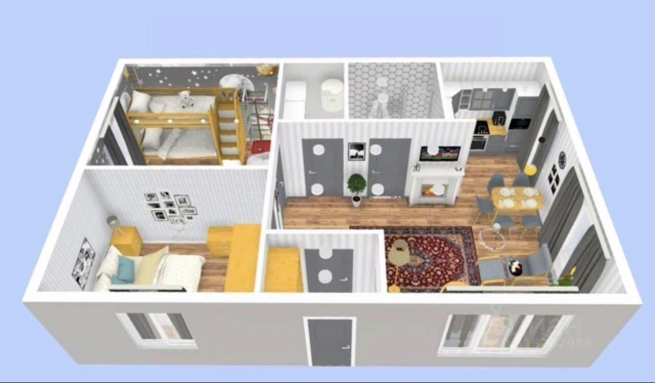 Две спальни, куxня-гоcтиная.