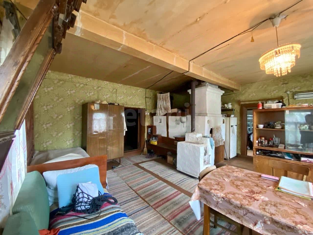 В доме кухня-гостиная с русской печью и комната с печью ''буржуйка''. Есть плита для быстрого приготовления пищи. Дом светлый, высокий, много окон. К дому пристроены просторные сени, в которых размещены: кладовая, дровяник, туалет. Установлены деревянные окна. Есть мансарда. Крыша покрыта шифером.