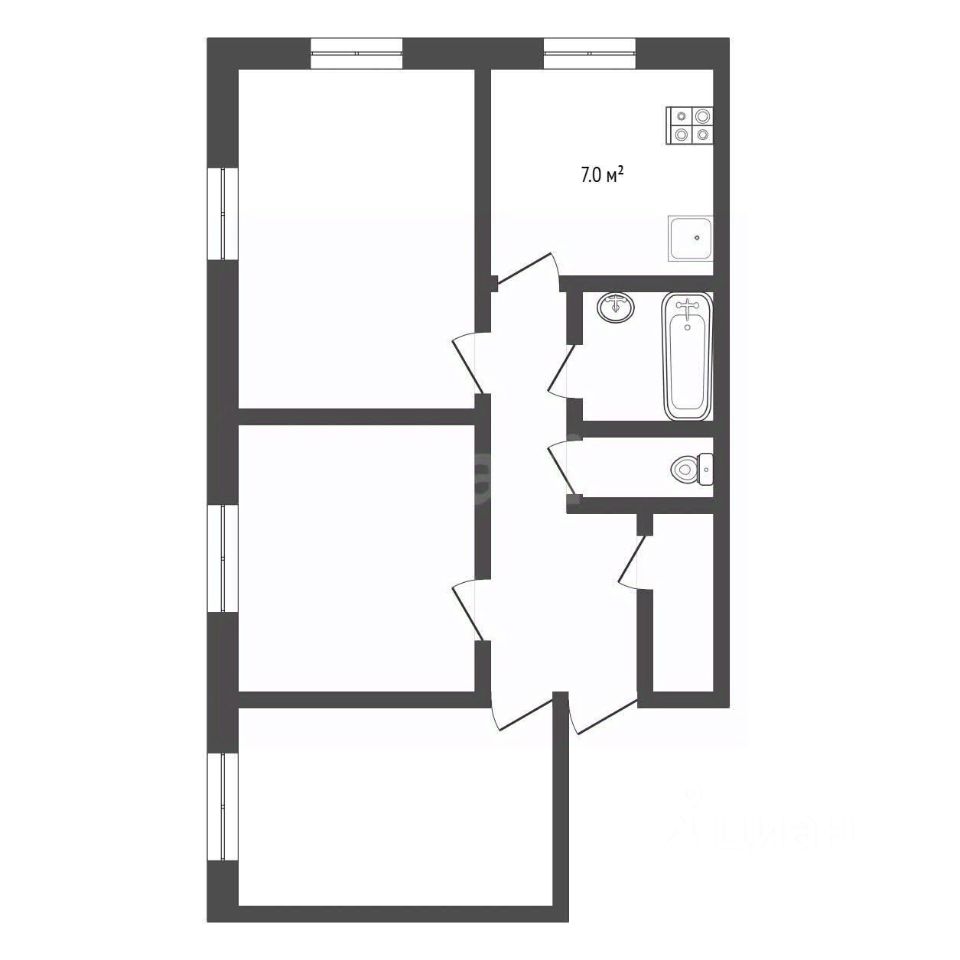 - Все три комнаты изолированы.