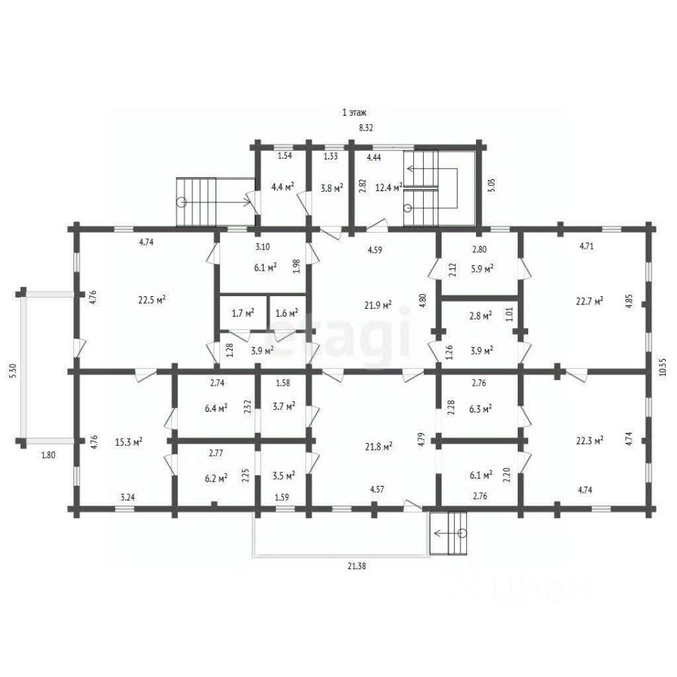 Площадь дома позволяет жить двум семьям, есть 2 входа с разных сторон. Поэтому возможно приобрести 1/2 долю и размежевать участок. Также, это отличная возможность приобрести готовый бизнес для праздников, свадеб, различных мероприятий. На первом этаже расположен холл - 25 кв.м, 4 комнаты по 25 кв.
