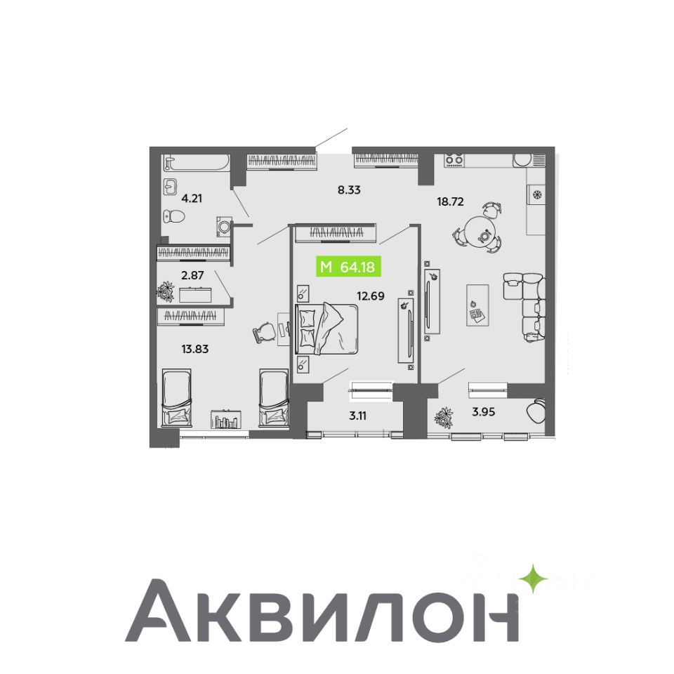 Отдел продаж работает без выходных. Продажа напрямую от Застройщика. Отделка квартиры White box (готова к ремонту). Сдача 2 кв. 2027 г. ЖИЛОЙ КОМПЛЕКС ''АКВИЛОН НАГОРНАЯ'': Проект от известного бюро финского архитектора Юкки Тикканена. ЖК класса ''комфорт +''. Концепция Termo-S: монолитная конструкция дома с увеличенным слоем утеплителя и навесными фасадами. Стены 540 мм. Экономия на коммунальных платежах до 40%: коллекторная бесстояковая разводка системы отопления с поквартирным учетом тепла, двухтарифные электросчетчики, современные приборы отопления уменьшенной высоты со встроенными терморегуляторами. Увеличенный слой утеплителя, кровли и цоколя 180 мм, класс энергосбережения А+ (очень высокий). Система inHOME: контроль за квартирой из мобильного приложения, ''умные'' счетчики, датчики защиты от пожара, протечек, открытия входной двери, IP-домофония с интерактивным многофункциональным экраном в каждой квартире, единый ключ smart key, открывающий двери в необходимые помещения, дистанционное отключение электроустановок в квартире standby. Видеонаблюдение. Дизайнерская отделка парадных, бесшумные и энергоэффективные лифты, колясочные. Светопрозрачные входные группы, безбарьерная среда (вход с уровня земли). Сити-боксы на нулевом этаже. ДВОР: Закрытый двор. Благоустройство двора: разновозрастные детские площадки с антитравматическим покрытием, турники, велопарковки, зоны отдыха со скамейками, озеленение территории. Двор свободный от машин. Дренажная система ''двор без луж''. КВАРТИРА: Лоджии во всех квартирах с панорамным остеклением, большие окна. Высота потолков не ниже 2,7 метра, концепция TOP FLAT высота потолков 3 м. на верхнем этаже Увеличенная шумоизоляция. Увеличенные и энергоэффективные многокамерные стеклопакеты, улучшенная вентиляция. Преимущества покупки от Группы Аквилон: — БЕСПЛАТНОЕ юридическое сопровождение сделки, помощь в подаче заявки и одобрении ипотеки, — АРКТИЧЕСКАЯ ИПОТЕКА, — ВЫКУП вашей квартиры: обмен вторички на новострой моментально, TRADE-IN с доп. скидкой до 150 000 руб., — доп. СКИДКА до 125 000 руб. для работников государственных бюджетных организаций в сфере образования, культуры и медицины, предприятий ОАО ПО ''Севмаш'', ОАО ''ЦС ''Звездочка'', АО ''СПО Арктика'', многодетным семьям до 3 лет, жителям области.