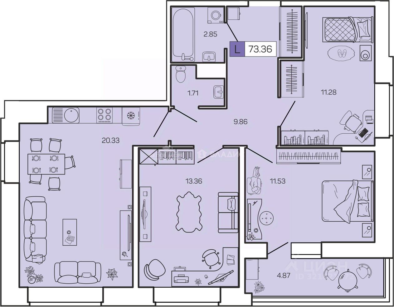 Общая площадь73,36 м2