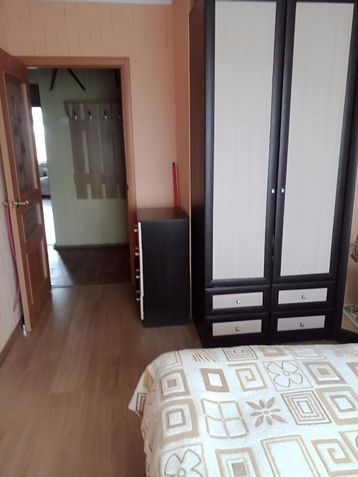 Один взрослый собственник.Теплая уютная квартира,тихие соседи, дом в стороне от дороги.На воду стоят счетчики.балкон застеклен и утеплен.Нет проблем с отоплением,водоснабжением и канализацией.Рядом школа,магазины.35 мин до центра города на автобусе.