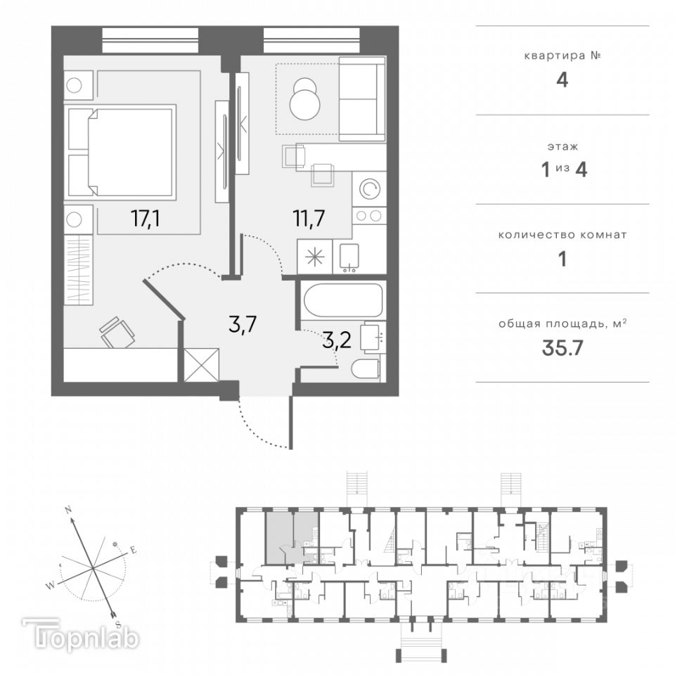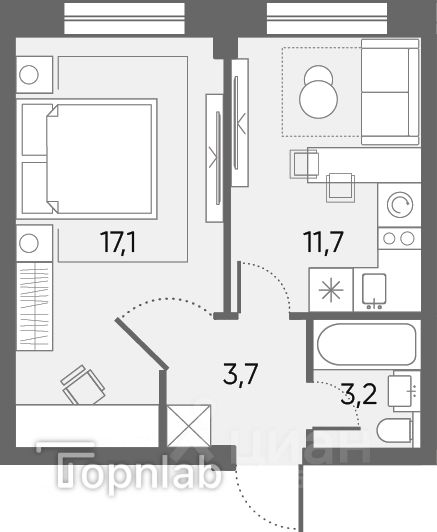 Арт. 119238409 Продается 1-но комнатная квартира площадью 35,7 кв.м. Функциональная евро-планировка, где в кухне площадью 11,7 кв.м можно разместить также и зону отдыха.Изолированная спальня площадью 17,1 кв.м позволит разместить полноценную двуспальную кровать, места хранения и рабочее место. Санузел совмещенный. В квартире возведены внутренние стены. Повышение цены с 01.11.25!
