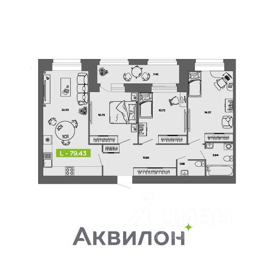 Отделка квартиры White box (готова к ремонту). Сдача 4 кв. 2026 г. ЖИЛОЙ КОМПЛЕКС ''Аквилон ROSA-2'': Класс ''комфорт'' Парк у дома. 7 детских садов. 5 школ и гимназия. Концепция Termo-S: стены из кирпича ''теплая керамика'', толщина наружных стен - 770 мм.