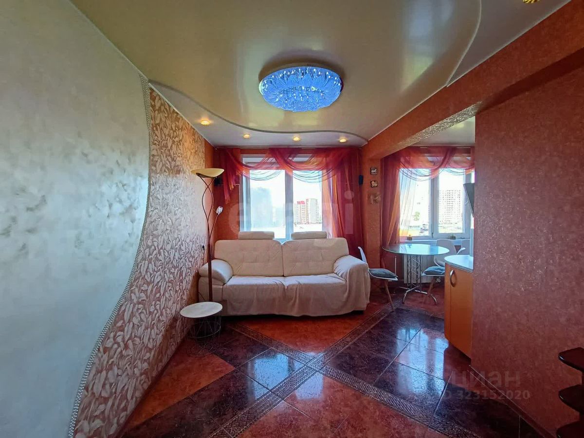 Квартира имеет удобную кухню-гостиную 17.2 кв. метра и три комнаты. Санузел раздельный. Большая ванная комната оборудована гидромассажной ванной. В туалете установлена дополнительная раковина. Двухуровневые натяжные потолки оснащены двухзонным освещением. В кухне-гостиной, коридоре и санузлах - керамическая плитка, полы с подогревом. Произведена замена коммуникаций. Окна пластиковые. Лоджия и застеклённый балкон выходят на разные стороны. В квартире остается вся мебель, кухонная бытовая техника (духовой шкаф, эл/варочная панель, посудомоечная машина, холодильник, м/в печь), стиральная машина, водонагреватель 80 л.