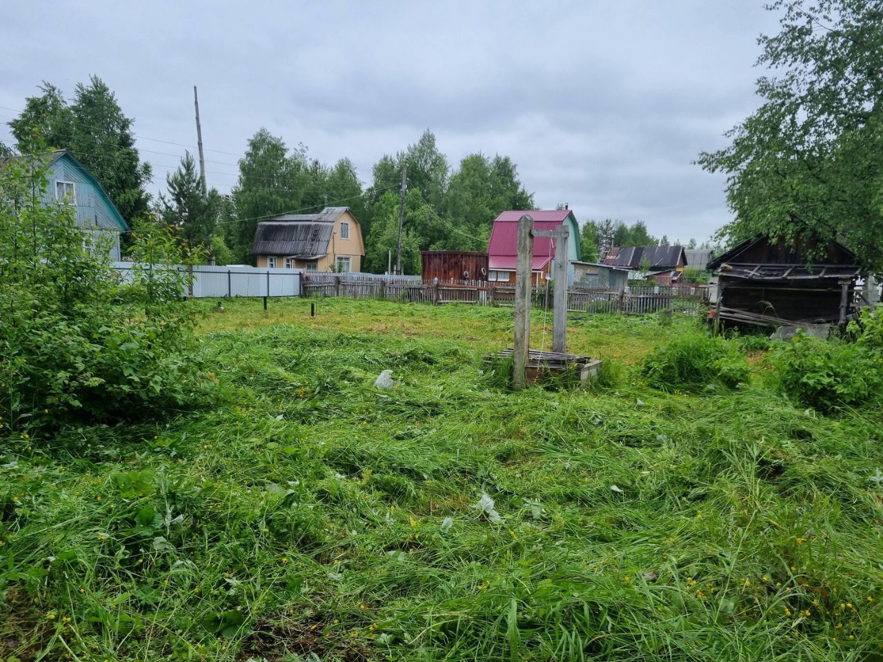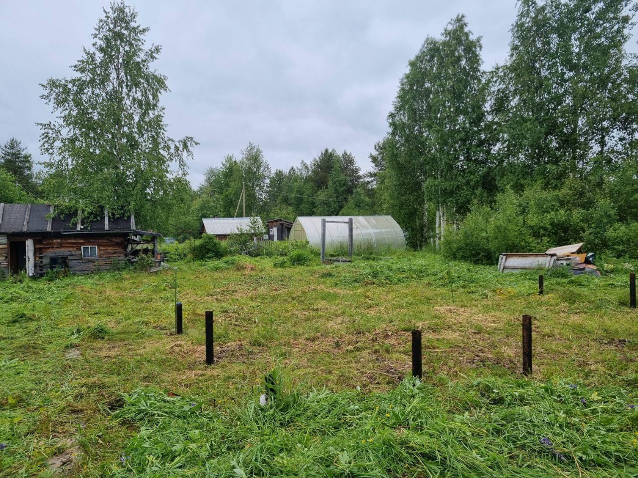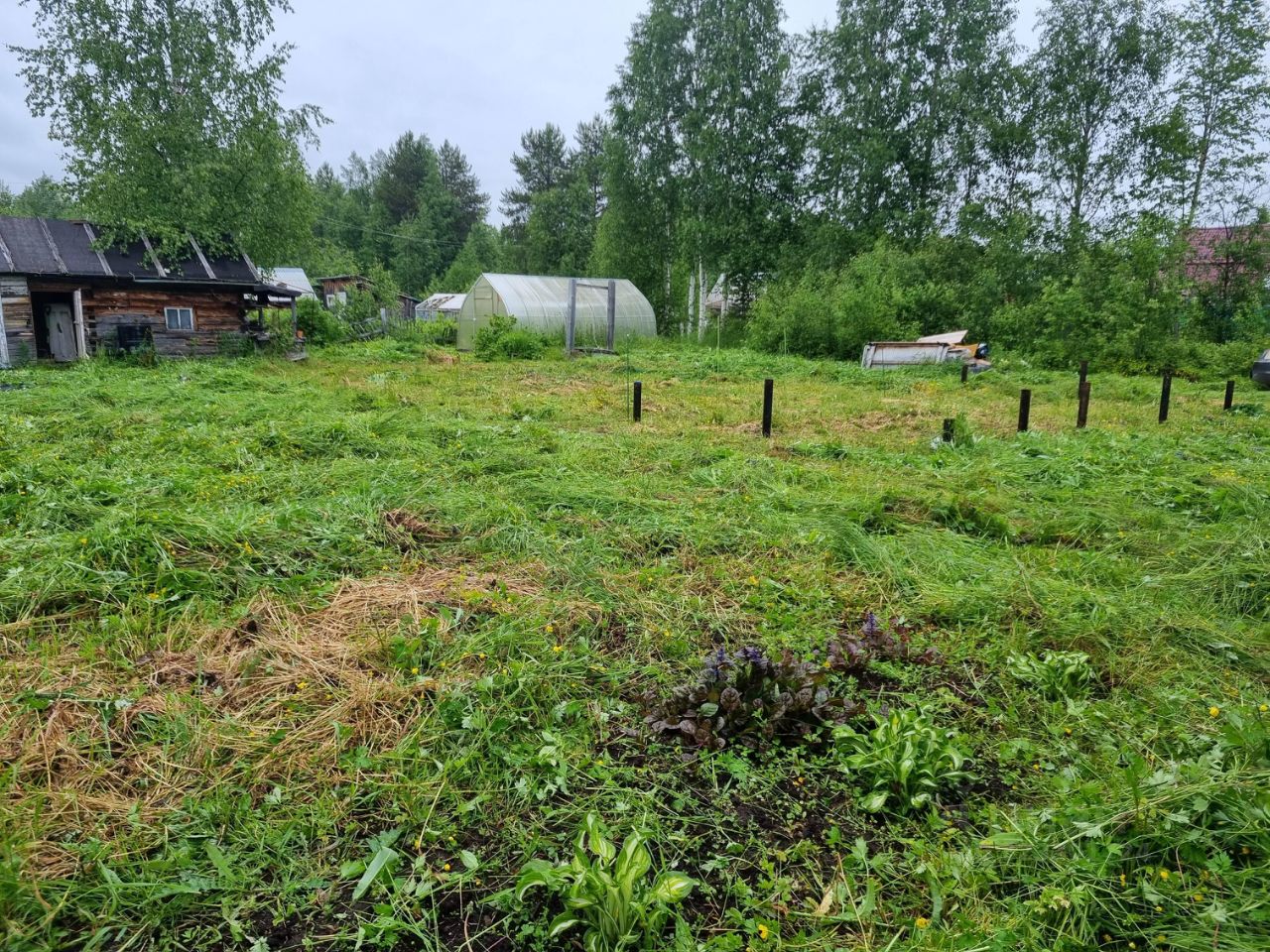 На участке есть колодец с технической водой на 4 кольца, большая теплица, старенькая банька.