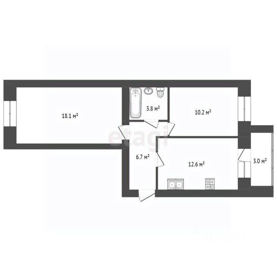 Общая площадь 51, 0 кв.м, кухня 12.6 кв. м.