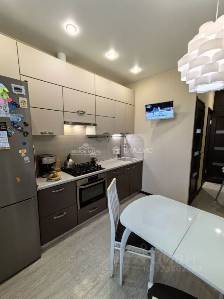 Ремонт в квартире выполнен в евростиле, что придаёт пространству современный вид и функциональность. Общая площадь квартиры составляет 51,2 кв. м, из которых 30,5 кв. м — жилая площадь, а 8 кв. м — кухня.