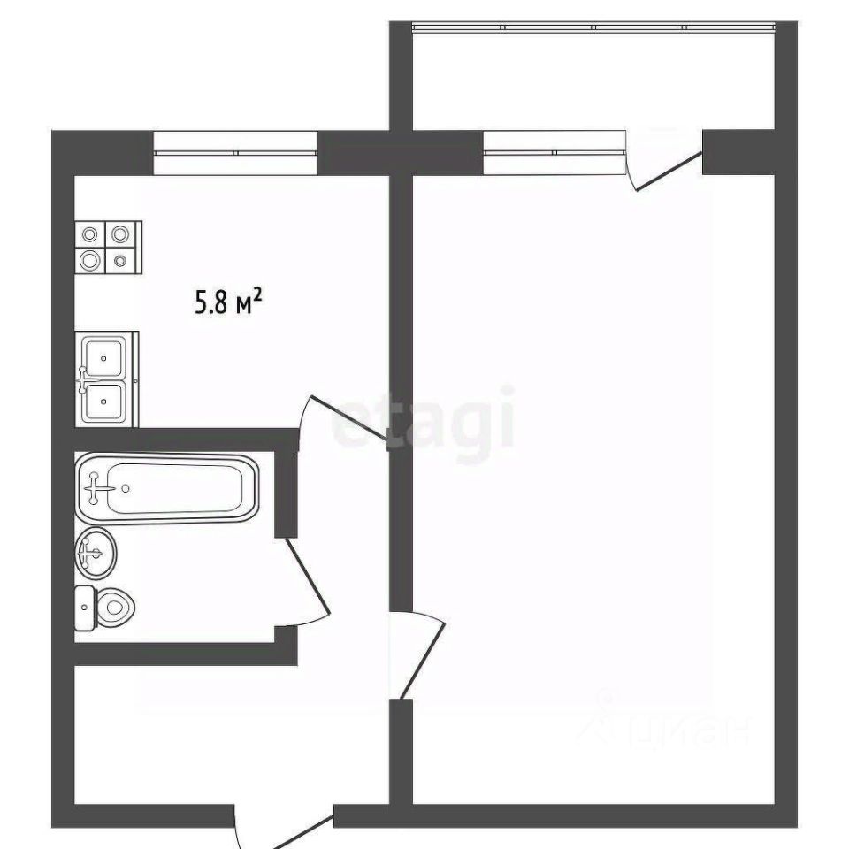 На продаже однокомнатная квартира на четвертом этаже пятиэтажного панельного дома.