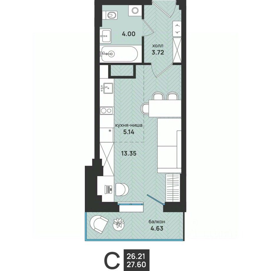 Общая площадь27,6 м2