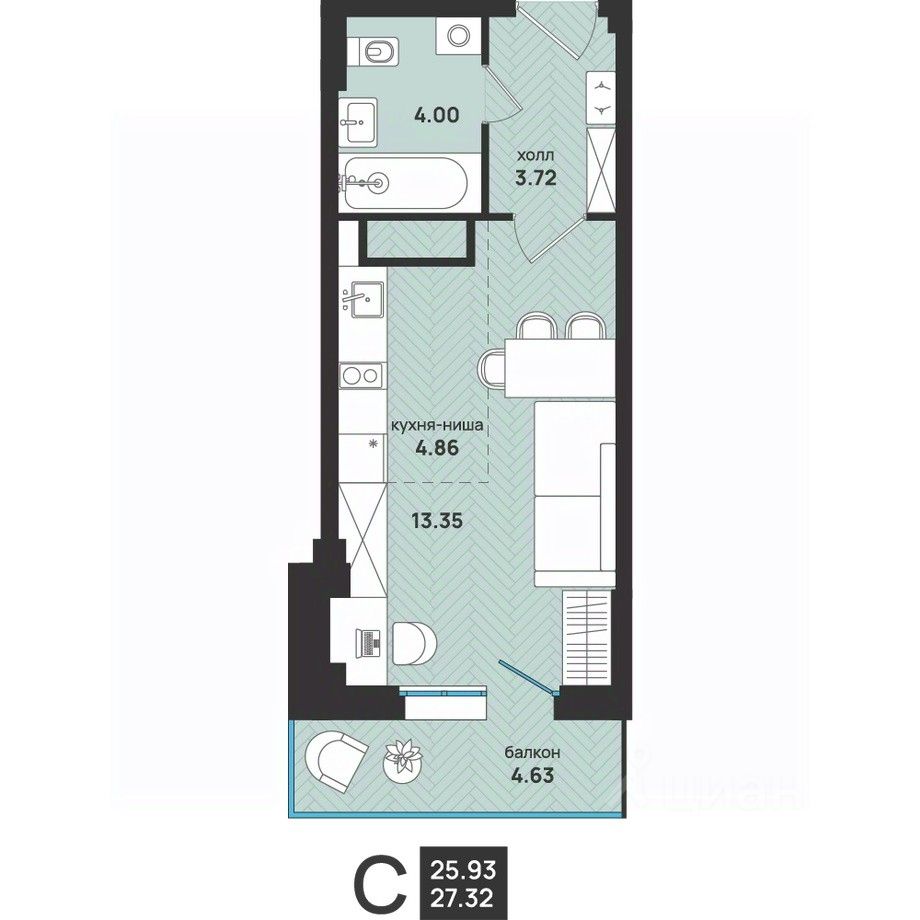 Общая площадь27,32 м2