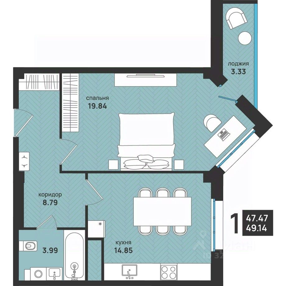Общая площадь49,14 м2