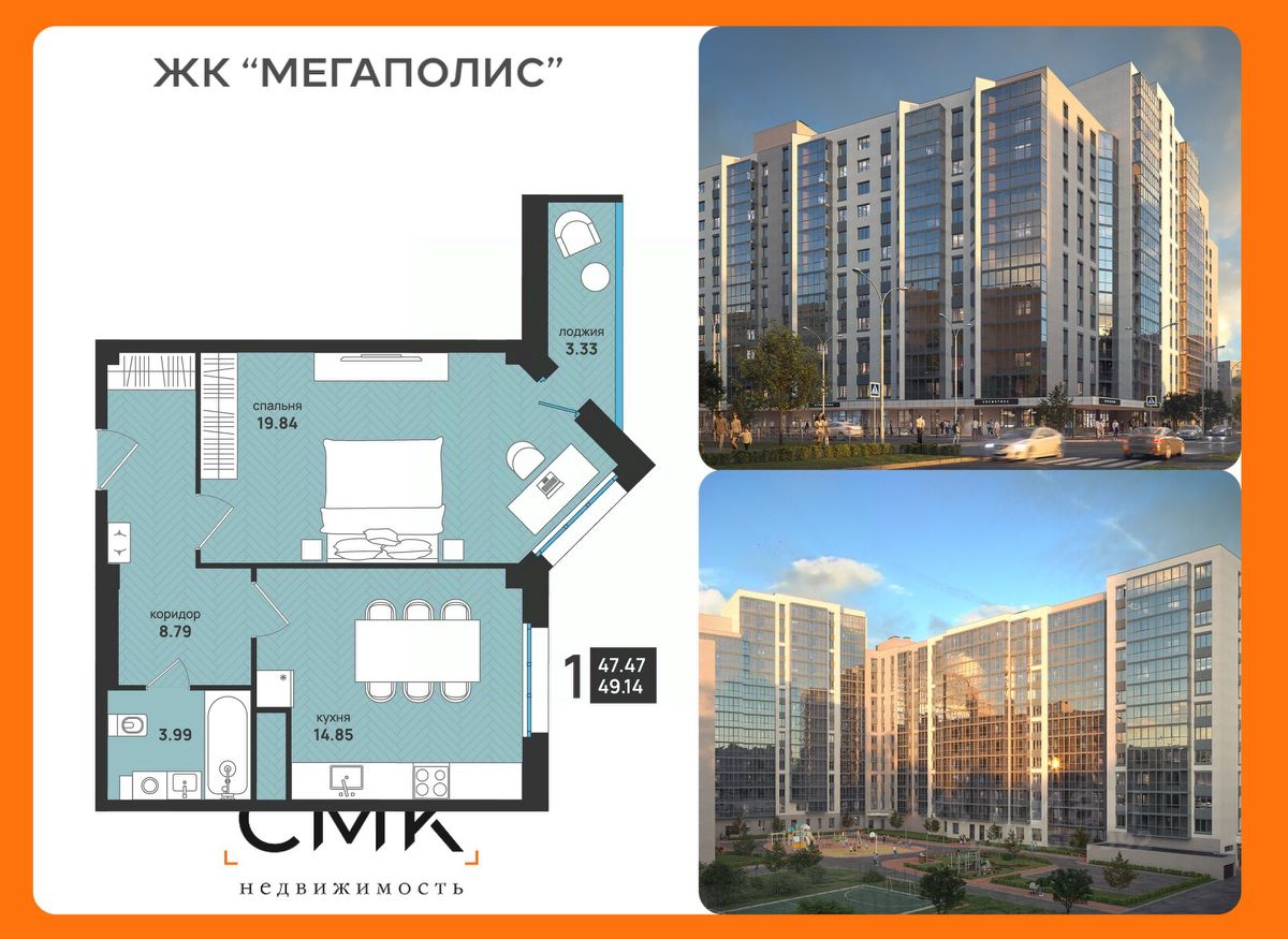 Общая площадь49,14 м2