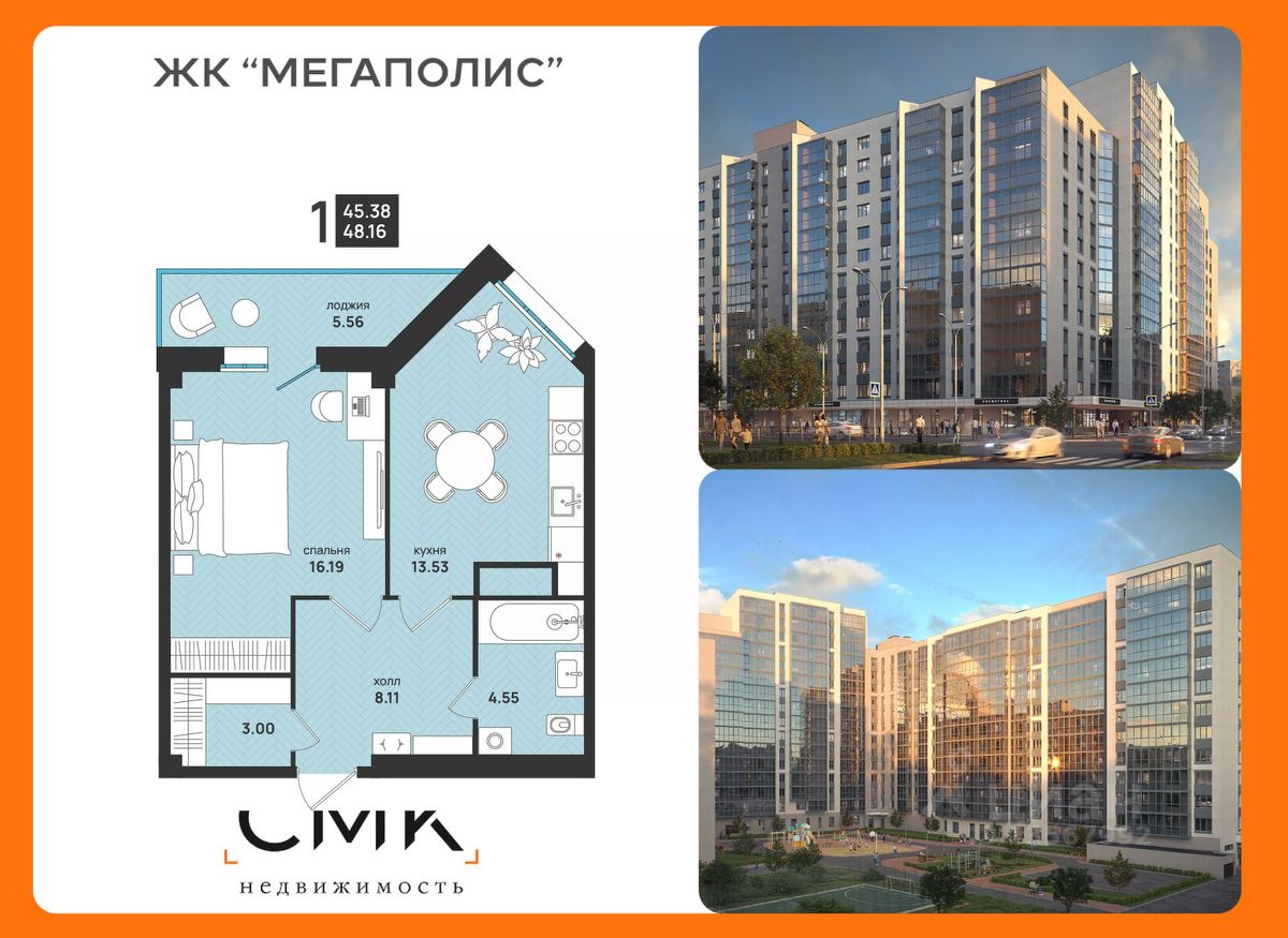 Общая площадь48,16 м2
