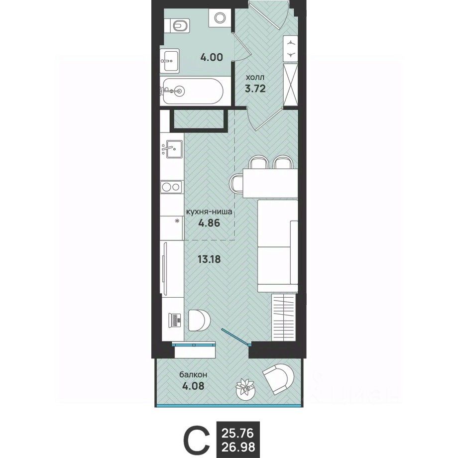 Общая площадь26,98 м2