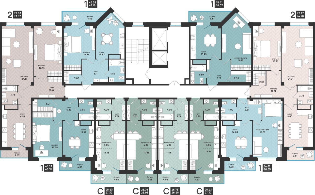 Входные группы выполнены без ступеней. Отделка холлов выполнена по уникальному дизайнерскому проекту.
