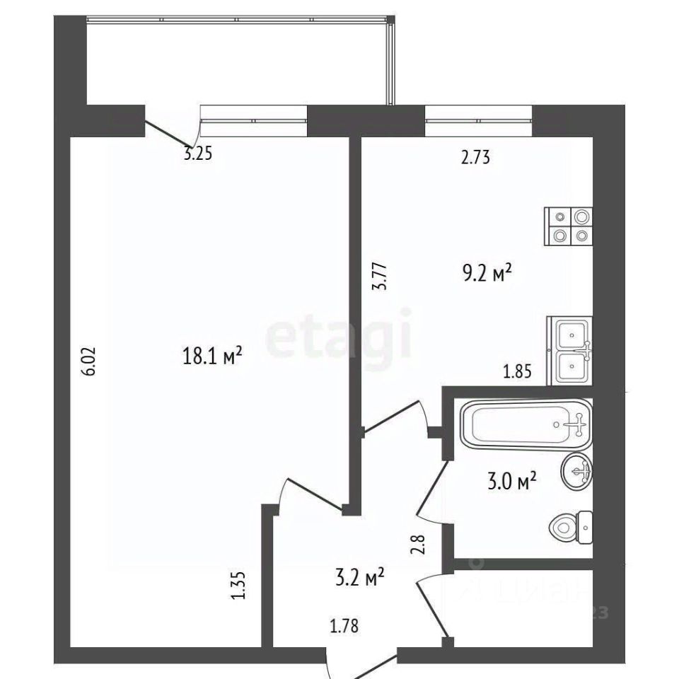 В продаже однокомнатная квартира улучшенной планировки, расположенная на 2 этаже, по ул. Грибоедова.