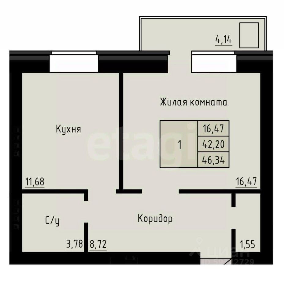 Планировка продумана до мелочей: — светлая комната с зоной для отдыха и сна, — просторная кухня, где удобно разместить гарнитур и технику, — просторный санузел, — коридор с местом под шкаф, — застекленная просторная лоджия — уютное место для утреннего кофе.