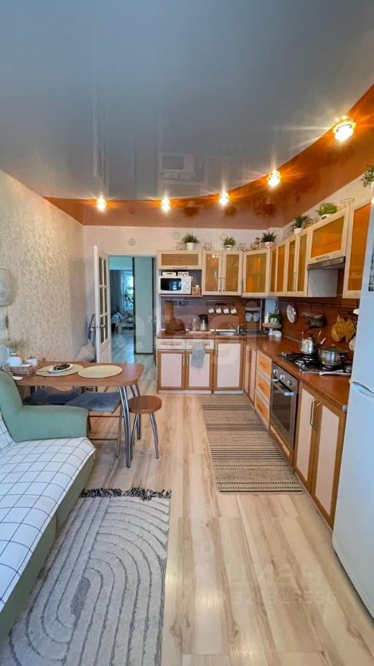 Во всей квартире сделан ремонт: стеклопакет ПВХ, натяжной потолок, ламинат на полу. Лоджия застеклена и обшита. Ванная комната и санузел совмещён ,в кафеле. Новый котёл prothem.Окна комнаты выходят во двор, а у кухни на магазин Союз.
