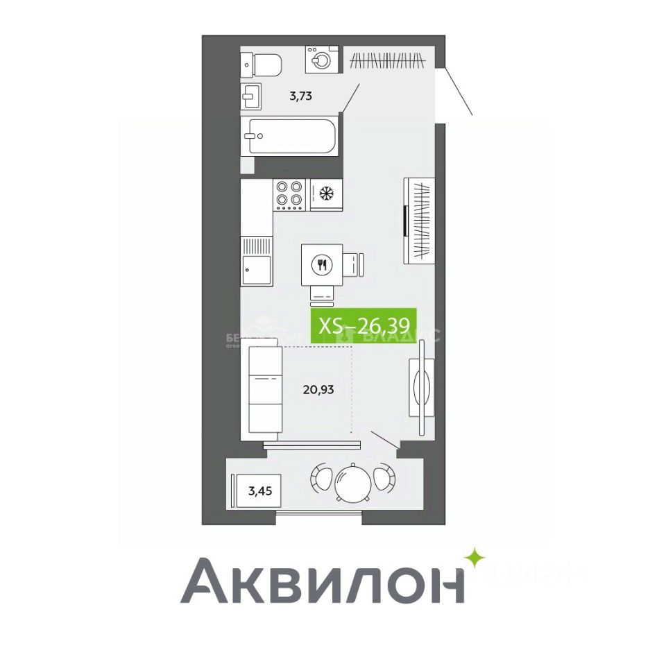 Общая площадь26,39 м2