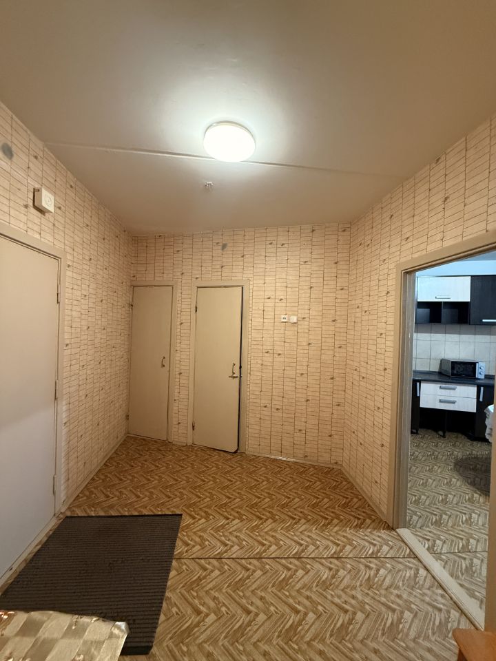 Площадь — 46 м², квартира находится на 9-м этаже. Из окон открывается приятный вид, дом кирпичный, подъезд чистый, работает консьерж.