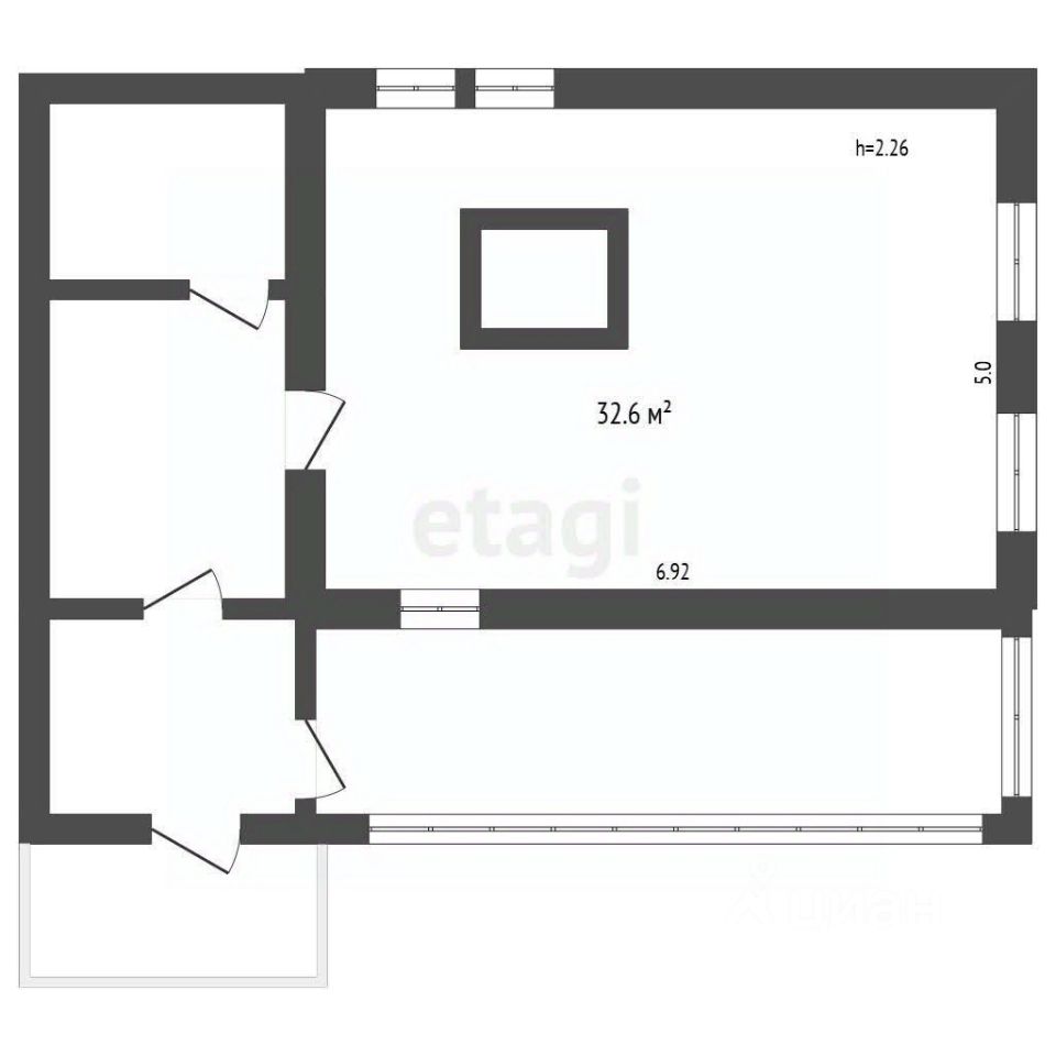 Дом жилой 32,6 кв. м, подходит для круглогодичного проживания.