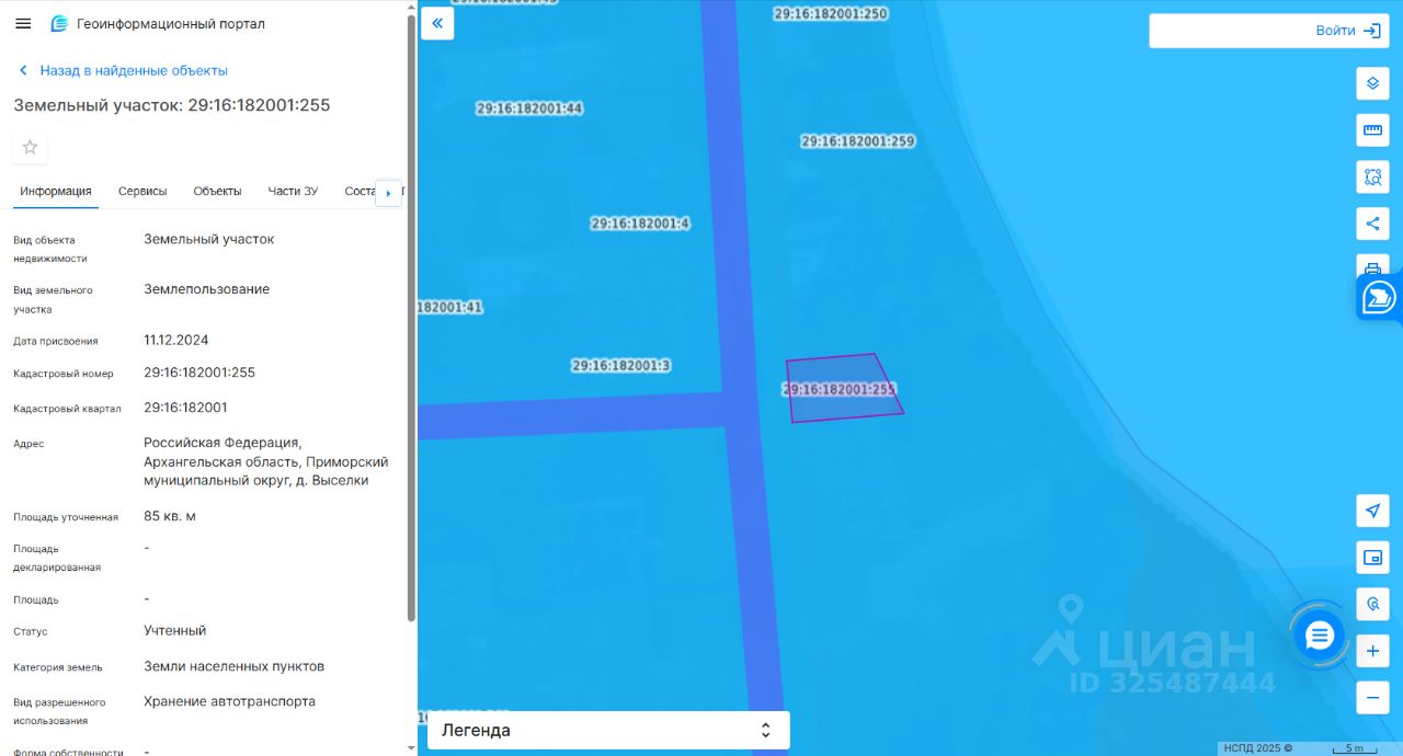 Данные получены с сайта ГИС Торги. Предмет аукциона: Право на заключение договора аренды земельного участка. Срок аренды земельного участка: 10 лет Местоположение земельного участка: Архангельская область, Приморский муниципальный округ, дер. Выселки. Категория земель: земли населенных пунктов Площадь земельного участка: 85 кв.м. Кадастровый номер: 29:16:182001:255 Форма собственности: земельный участок, государственная собственность на который не разграничена. Территориальная зона: зона застройки индивидуальными жилыми домами (Ж-3). Разрешенное использование земельного участка: Хранение автотранспорта. Обременение: земельный участок ограничен в использовании как зона с особыми условиями использования территории, реестровый номер 29:00-6.451, 29:00-6.452, 29:00-6.453, 29:00-6.455, 29:00-6.454, 29:16-6.1156, 29:16-6.1115, 29:16-6.1116.