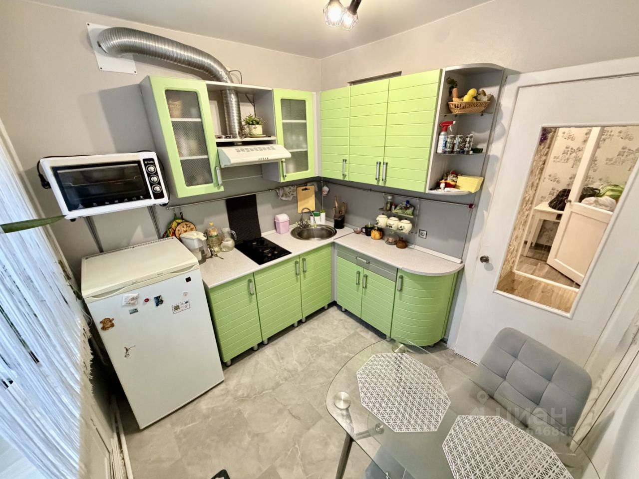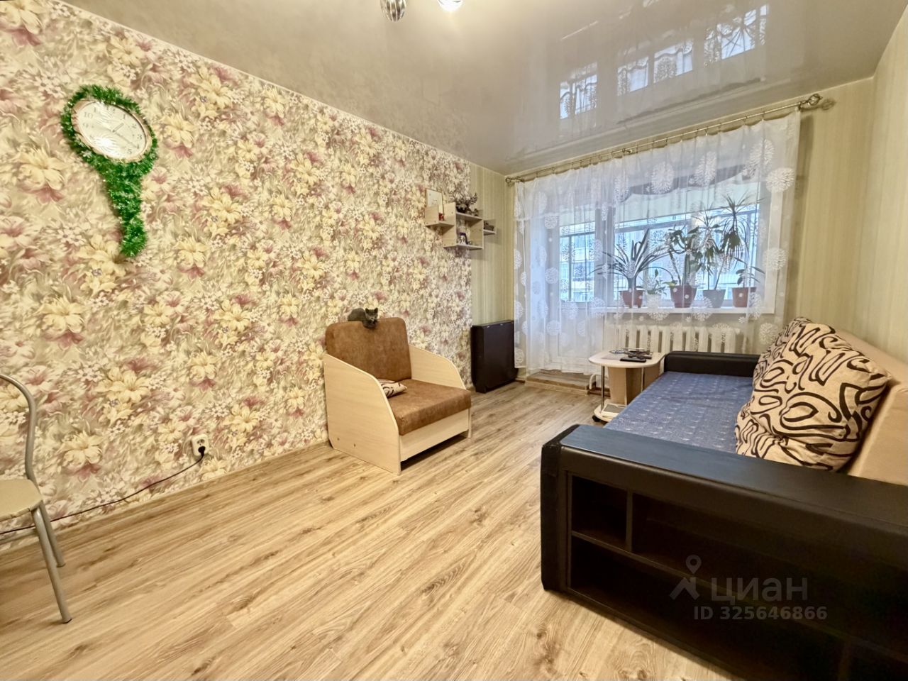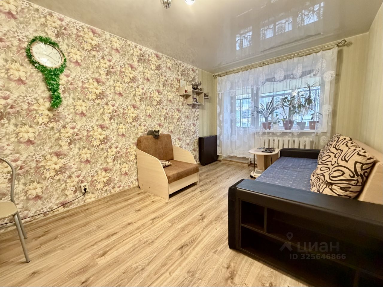 Сделан аккуратный косметический ремонт: - Стеклопакеты - Ламинат в комнате - Натяжной потолок - Достаточно вместительная кухня 6.1кв.м , мебель остается , сделана кладовка для хранения заготовок - Сан. узел совмещен, обшит панелями , стоят счетчики , поменяны трубы , в т.ч стояк канализации