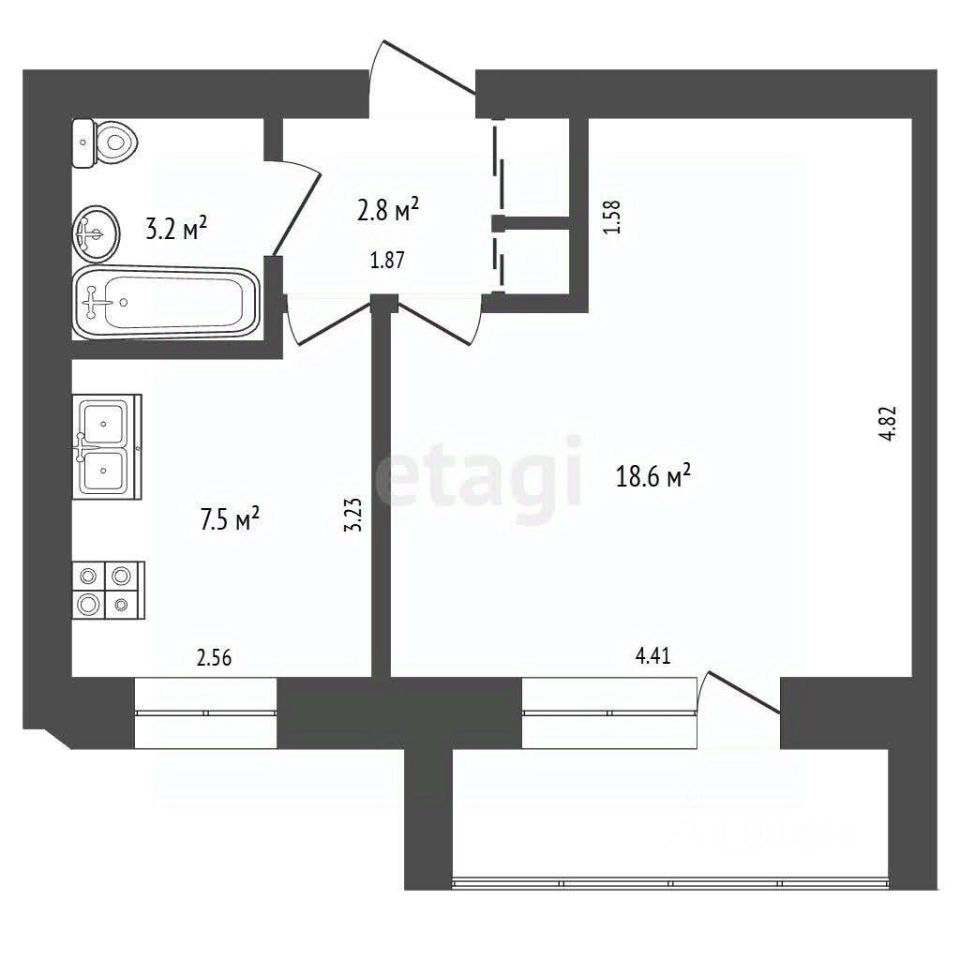 В продаже однокомнатная квартира общей площадью 32,9 кв.м., расположенная на пятом этаже.