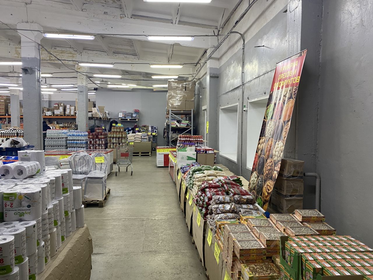 Сдаётся в аренду коммерческое помещение с хорошей транспортной доступностью и подъездными путями (возможность проведения погрузочно-разгрузочных работ) площадью 1122кв.м. Здание кирпичное, крыша - двускатная, покрыта шифером (внизу бетонные перекрытия), внутренняя отделка сделана, напольное покрытие - бетонная стяжка. Высота потолков 5,5м. Подведены все коммуникации: отопление газовое (своя газовая котельная), водопровод и канализация центральные (имеется санузел), электричество мощностью 60Кв. Наличие пожарно-охранной сигнализации. Обустроены парковочные места с освещением в вечернее время. Имеется холодное помещение площадью 171кв.м., куда выведено отопление с возможностью подключения. Одно из помещений обустроено холодильной камерой.