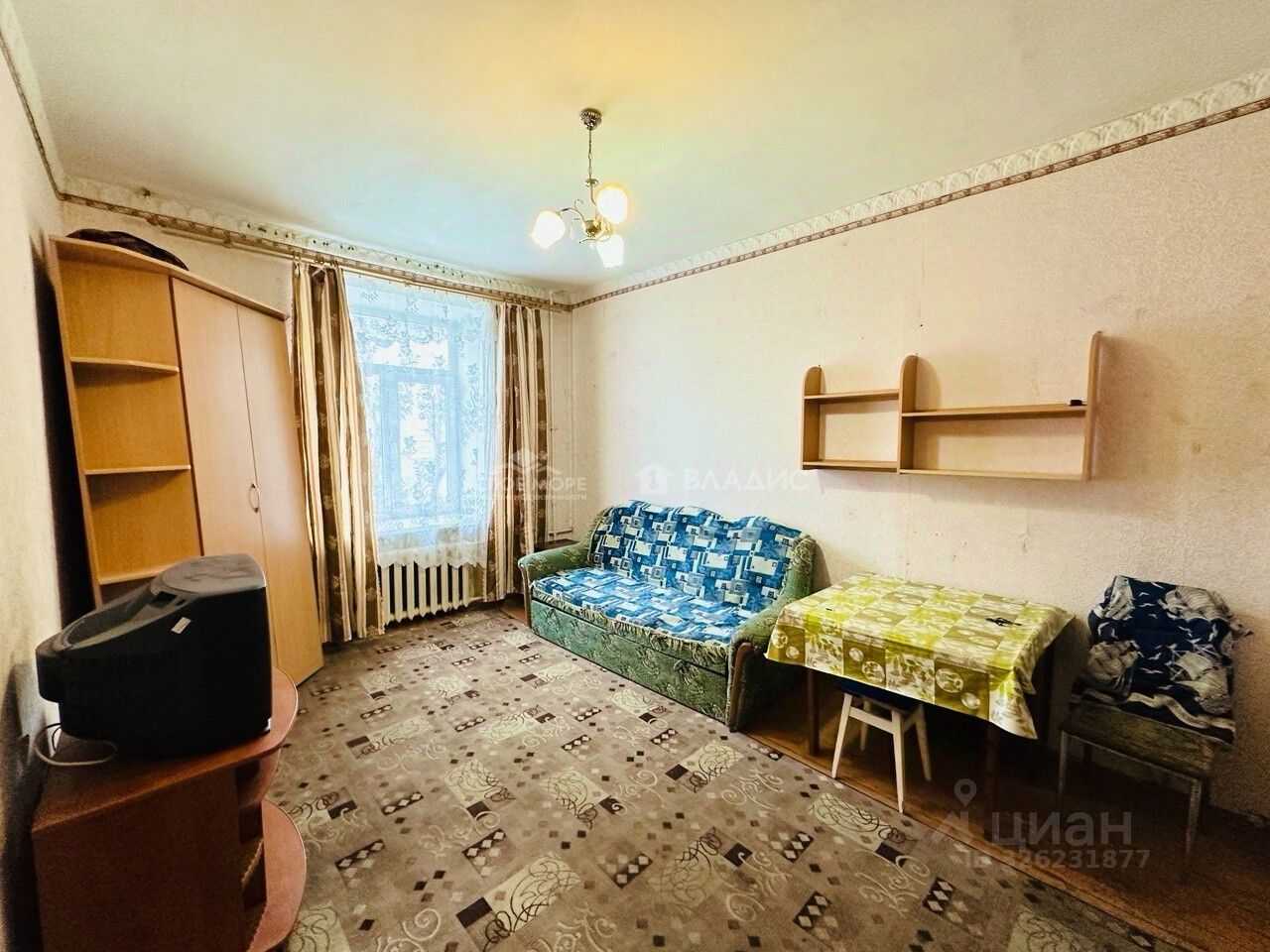 -Комната просторная - метраж 17,5 кв.м.. Оставим мебель если потребуется на первое время.