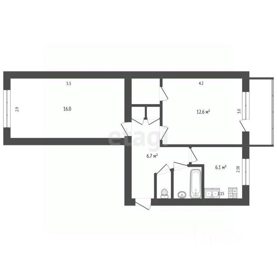 Описание планировки: Квартира обладает продуманной планировкой. Изолированные комнаты позволяют с комфортом разместить семью или использовать одну из комнат как кабинет. Кухня компактная и функциональная.