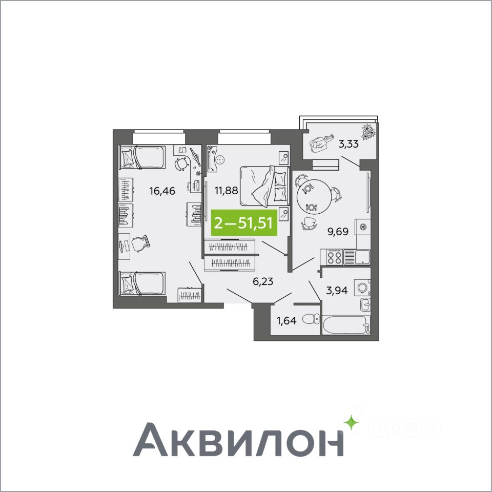 Отдел продаж работает без выходных. Продажа напрямую от Застройщика. Отделка квартиры White box (готова к ремонту). Сдача в 3 кв. 2026 года! ЖИЛОЙ КОМПЛЕКС ''Аквилон NEO'' 3 очереди: Дом класса ''комфорт+''. Монолитно-кирпичные стены толщиной 570мм, усиленное утепление кровли, класс энергосбережения А (высокий).