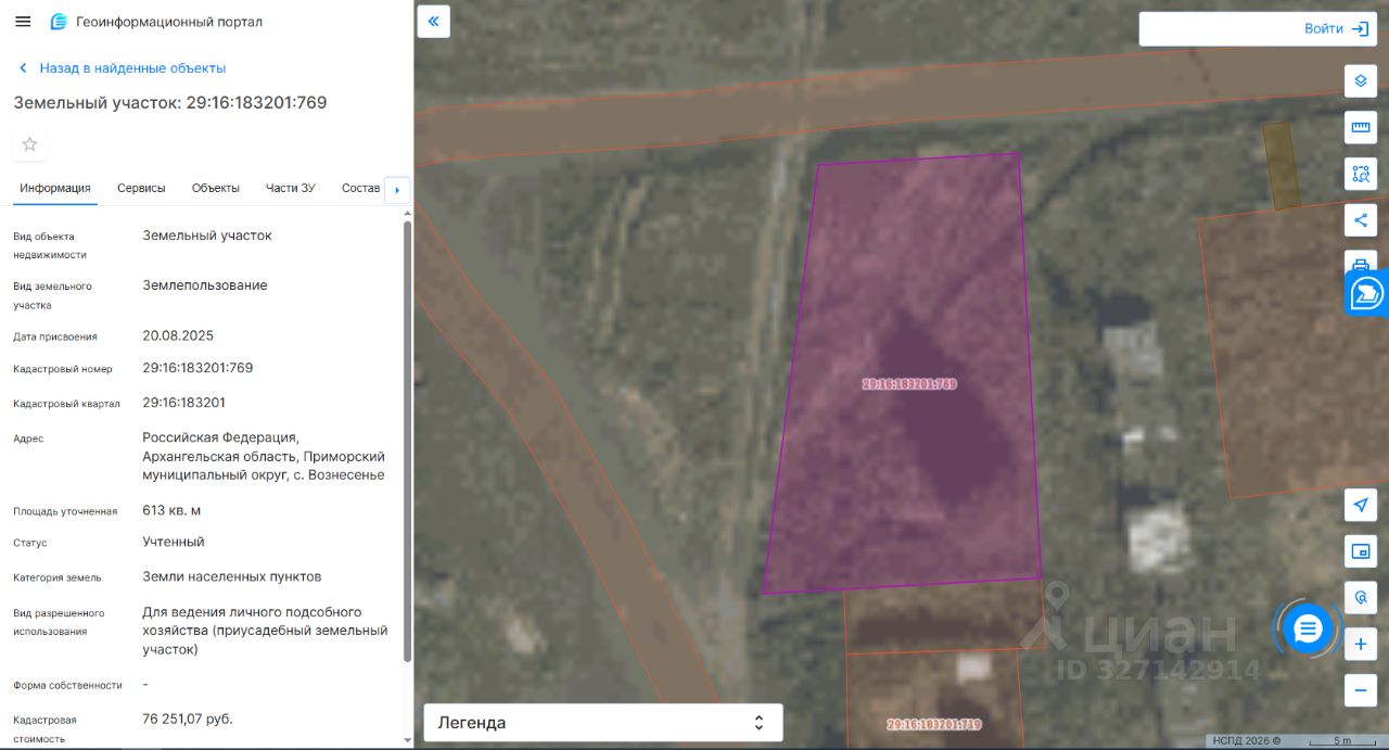 Данные получены с сайта ГИС Торги. Предмет аукциона: Право на заключение договора аренды земельного участка. Срок аренды земельного участка: 20 лет Местоположение земельного участка: Архангельская область, Приморский муниципальный округ, с. Вознесенье. Категория земель: земли населенных пунктов Площадь земельного участка: 613 кв.м. Кадастровый номер: 29:16:183201:769 Форма собственности: земельный участок, государственная собственность на который не разграничена. Территориальная зона: зона застройки индивидуальными жилыми домами (Ж-3). Разрешенное использование земельного участка: для ведения личного подсобного хозяйства (приусадебный земельный участок). Обременение: земельный участок ограничен в использовании как зона с особыми условиями использования территории, реестровый номер 29:16-6.1152, 29:16-6.877, 29:16-6.878.