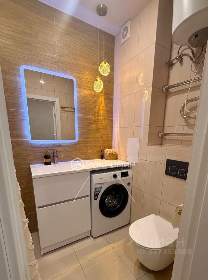 Просторная прихожая, где можно зонировать вместительный шкаф для хранения вещей и верхней одежды. Санузел совмещенный, керамогранит от пола до потолка, установлена качественная сантехника, стиральная машина и водонагреватель. В санузле и на лоджии сделаны тёплые полы.